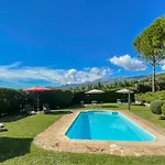 Willa Finca La Sayuela dysponuje słonecznym patio z widokiem na górę oraz zewnętrznym basenem.